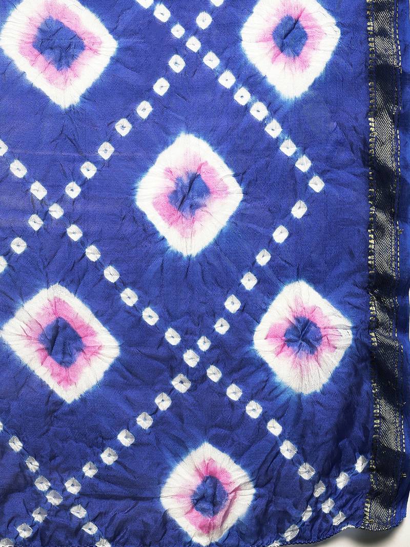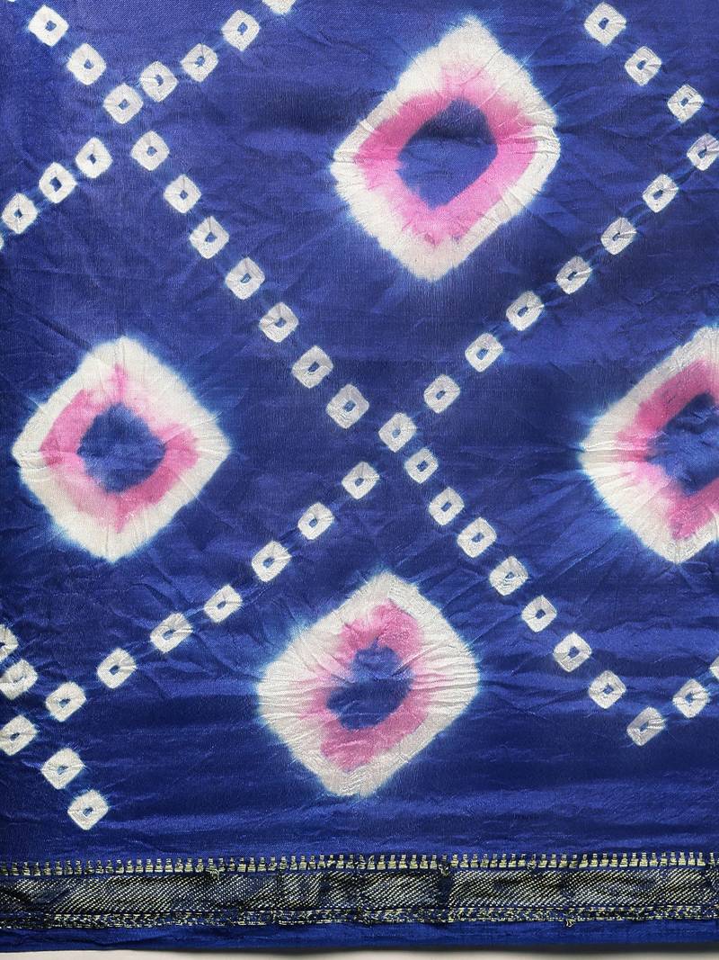 | Product Name | Blue Hand Dyed Bandhani Art Silk With Zari Border Saree | |