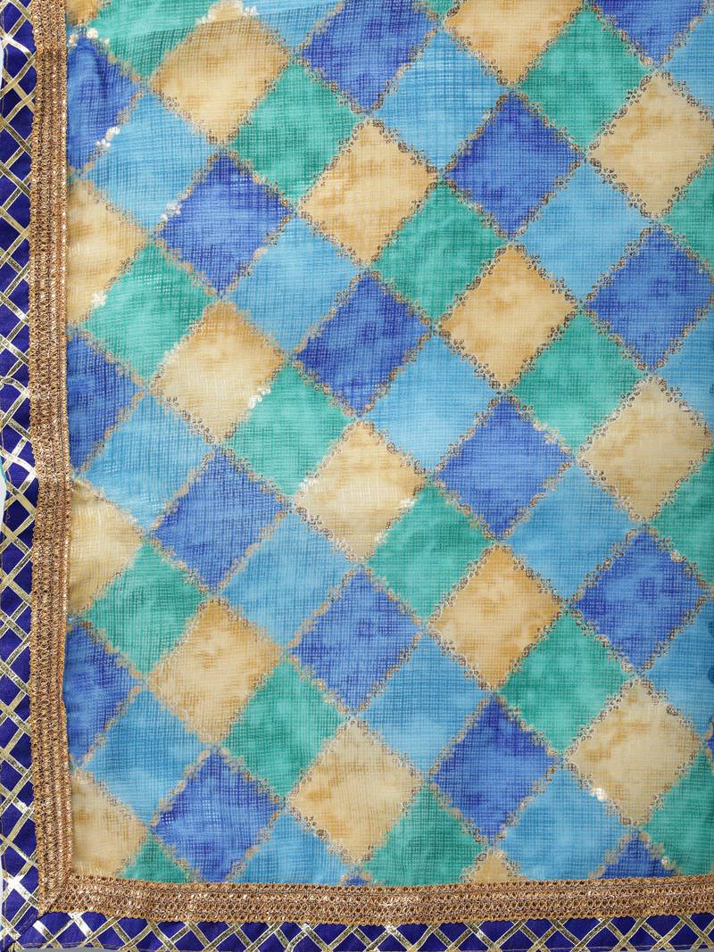 Blue handcrafted kota silk stitched lehenga with dupatta