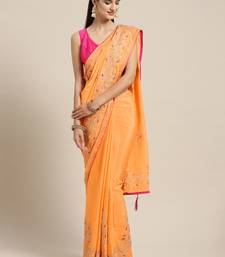 | Product Description | Peach Coloured And Golden Gotta Embellished Saree With Resham Detail And Has An Embellished Border