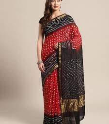 Maroon printed bandhani zari work art silk saree