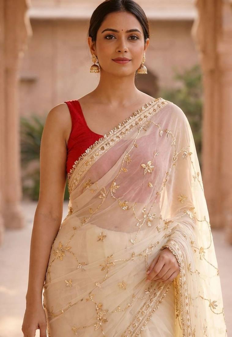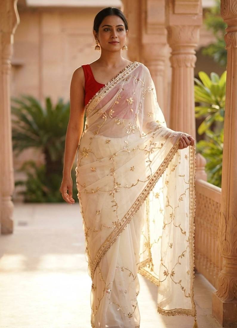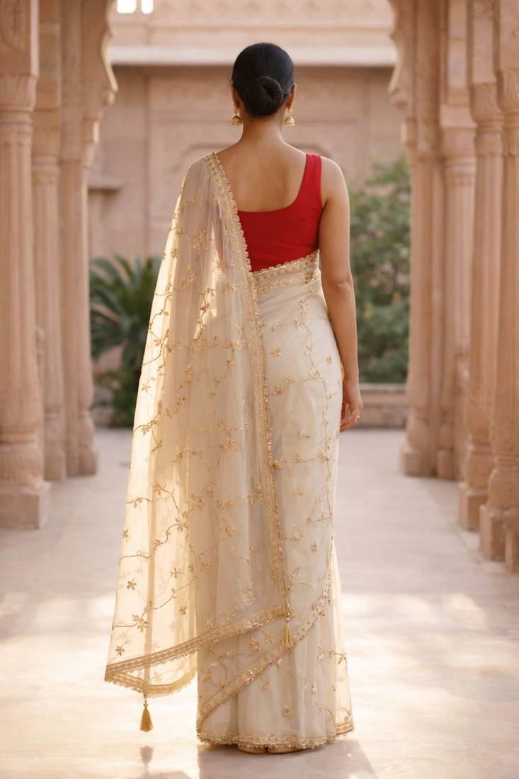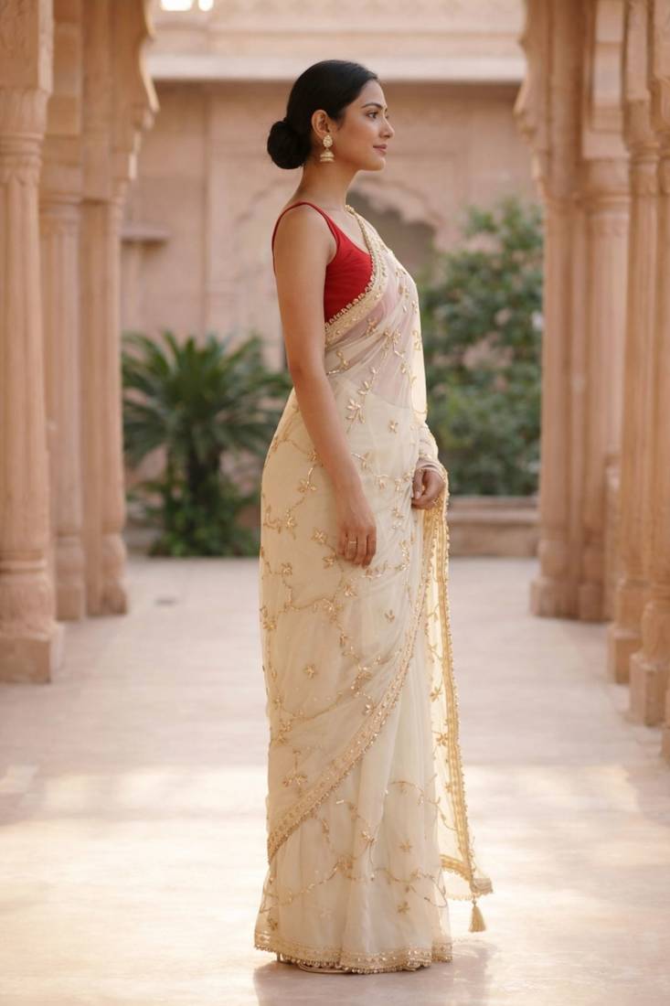 | Product Name | Off White Chiffon Saree With Gota Patti Jaal Work | |