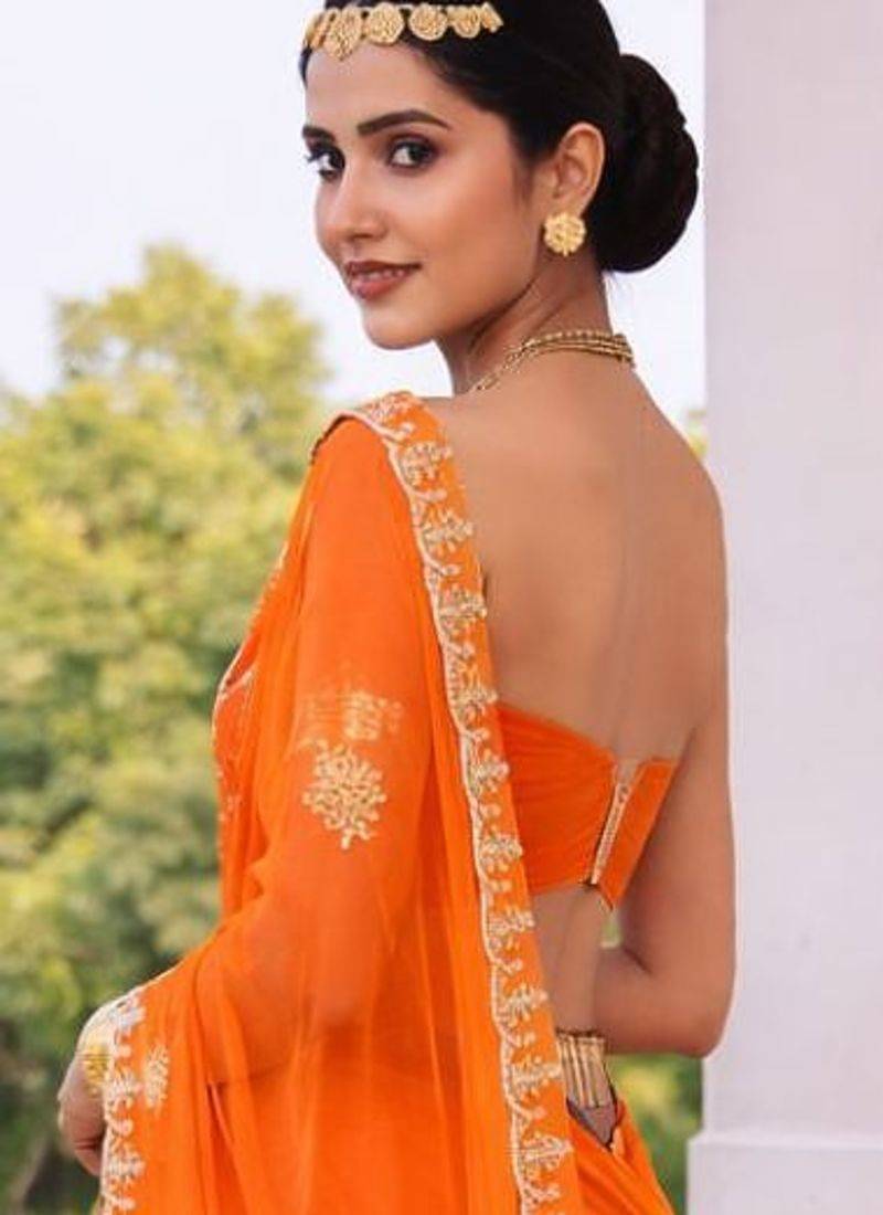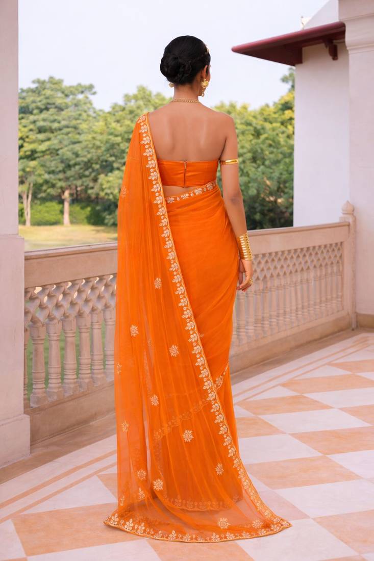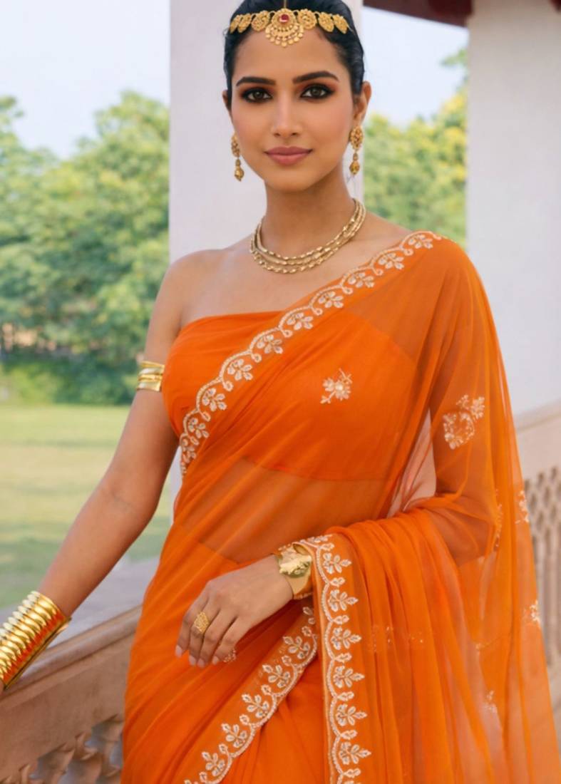 | Product Name | Orange Chiffon Saree With Gotta Patti & Kardana Work Scallop Border | |