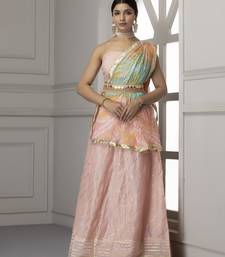 Peach and blue silk lehenga with unstitched blouse dupatta