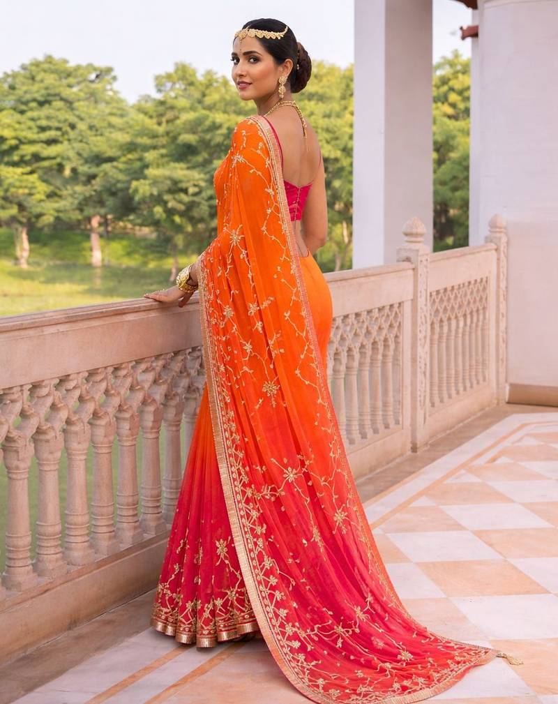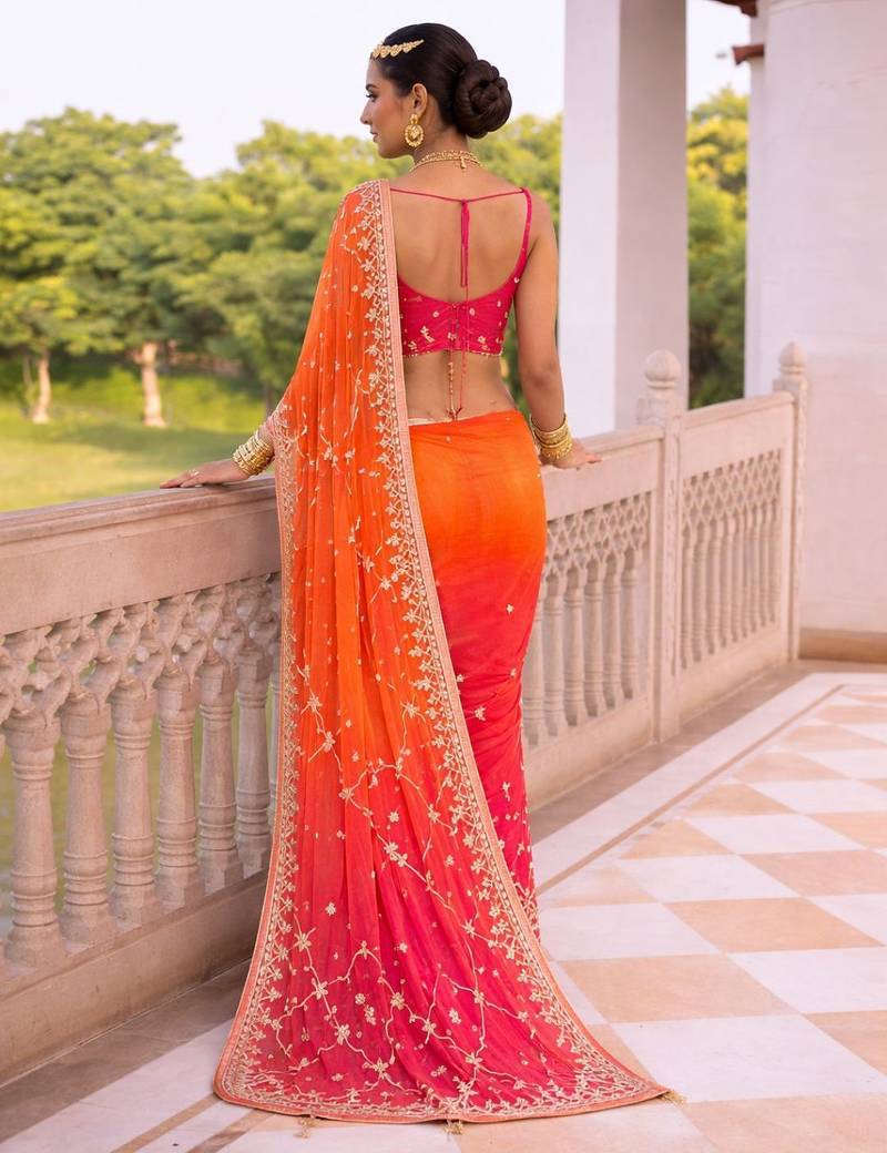 | Product Name | Pink & Orange Shaded Chiffon Saree With Gota Patti Jaal Work | |