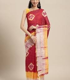 Red bandhani art silk saree with zari border