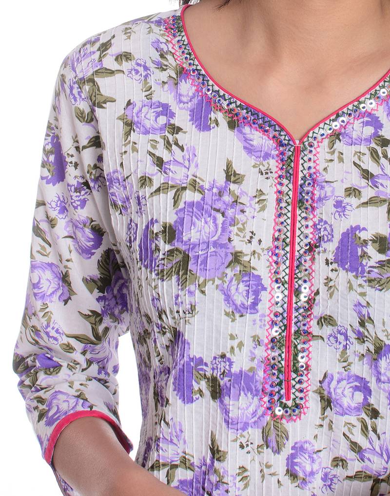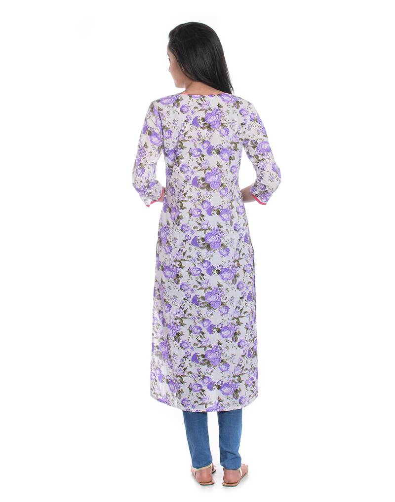 | Product Name | White & Purple Floral Printed Cotton Straight Kurta | |