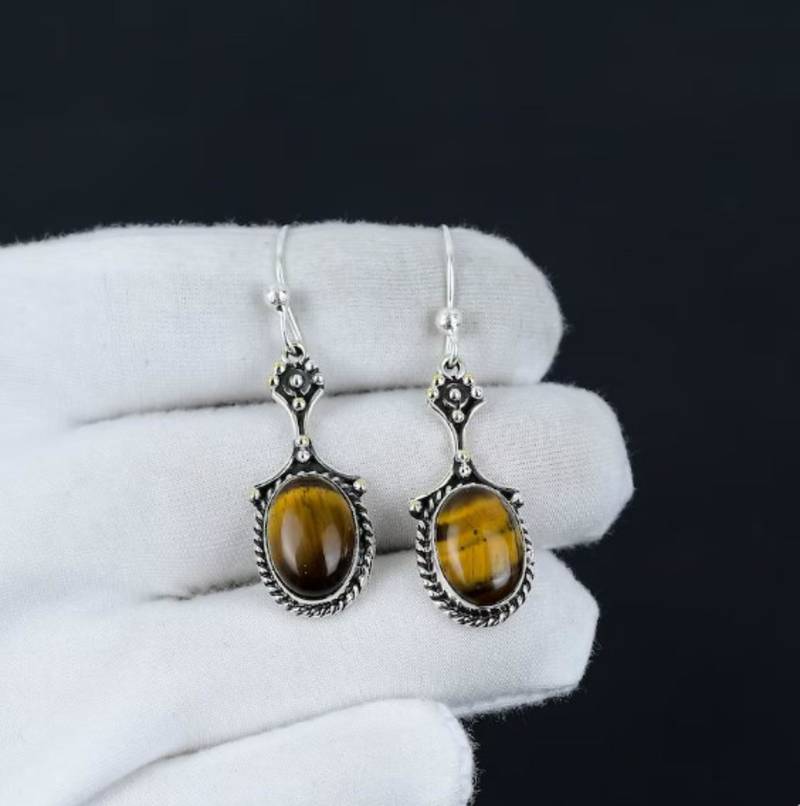 Product Name Tiger’s Eye Earrings | Handcrafted 925 Sterling Silver