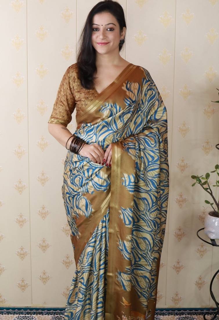 | Product Description | Tussar Silk Printed Zari Border Saree With Matching Blouse Piece |