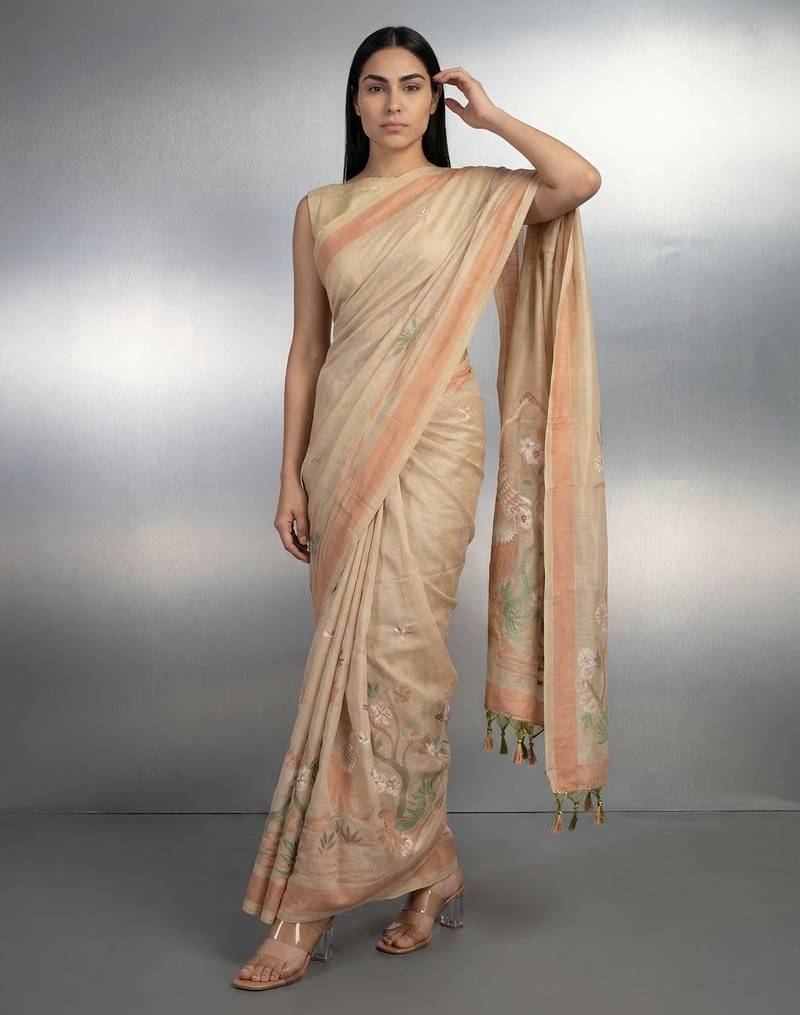 | • | Saree | : | Color- Beige / Fabric- Linen |