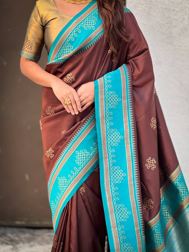 | Product Name | Chocolate Border Traditional Butti & Geometric Zari Work Rich Woven Pallu Design | |