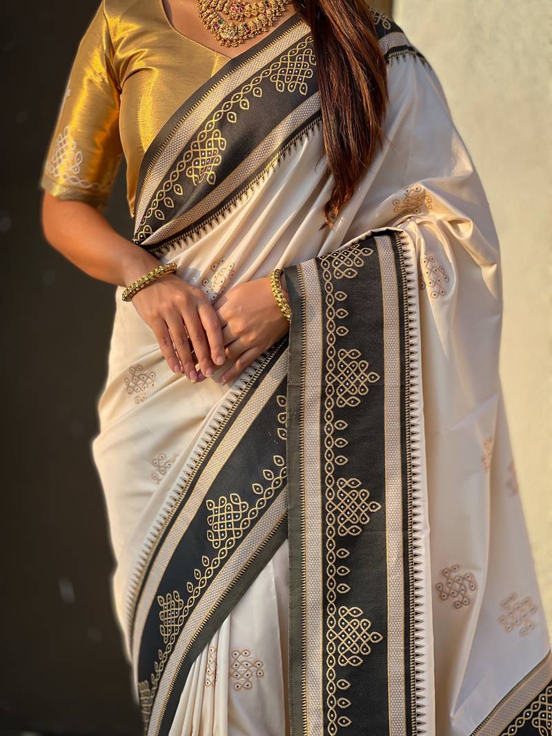 | Product Name | Cream Border Traditional Butti & Geometric Zari Work Rich Woven Pallu Design | |