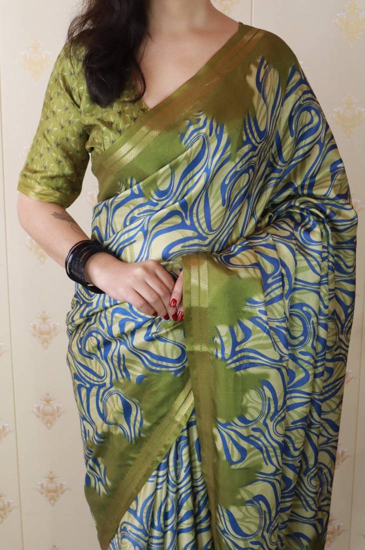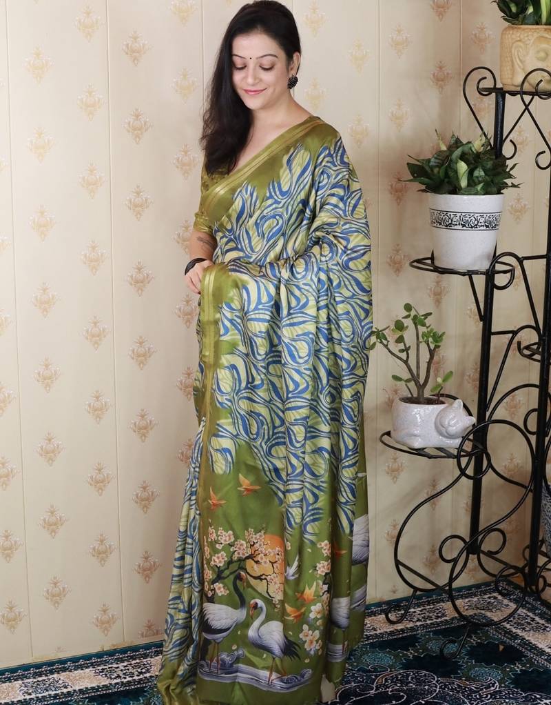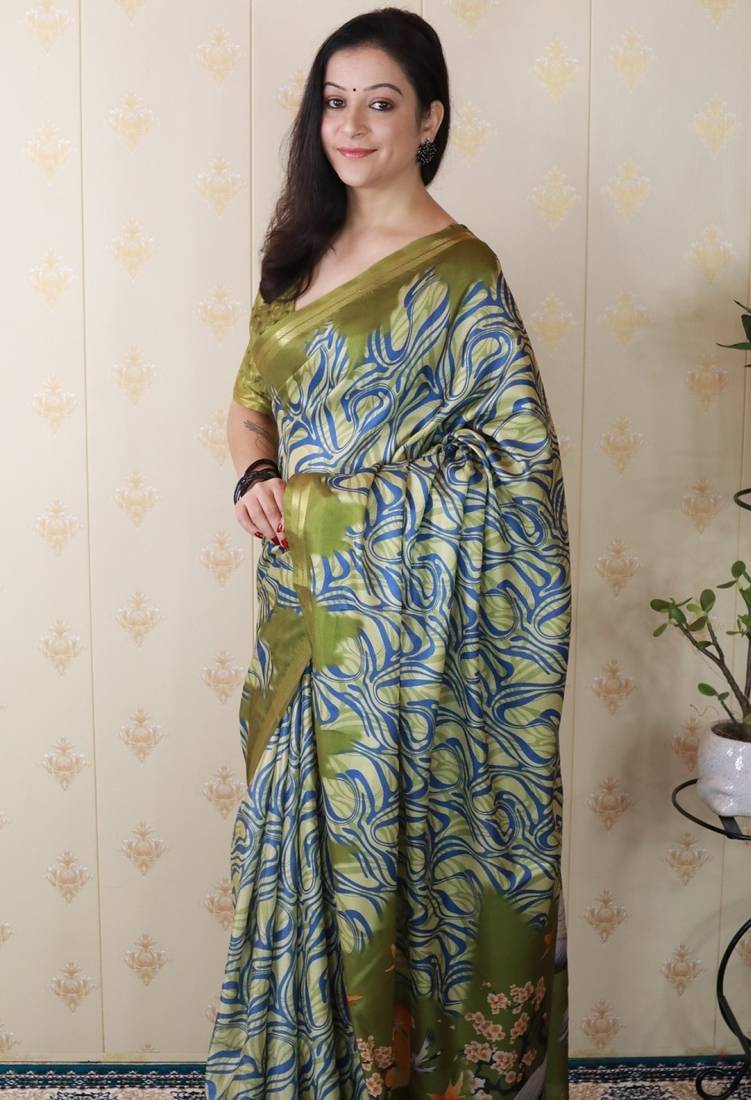 | Product Name | Green Tussar Silk Printed Zari Border Saree With Matching Blouse Piece | |