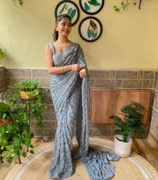 Grey woven georgette saree with blouse