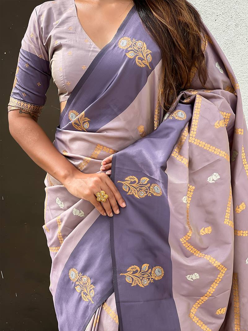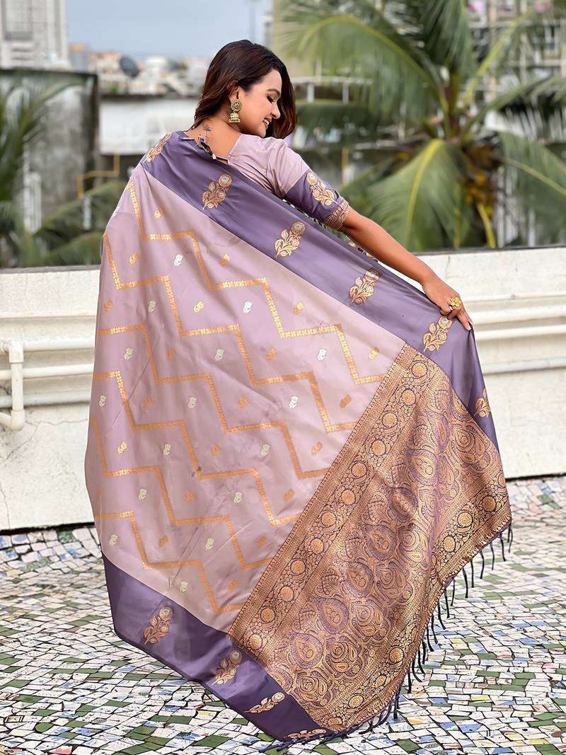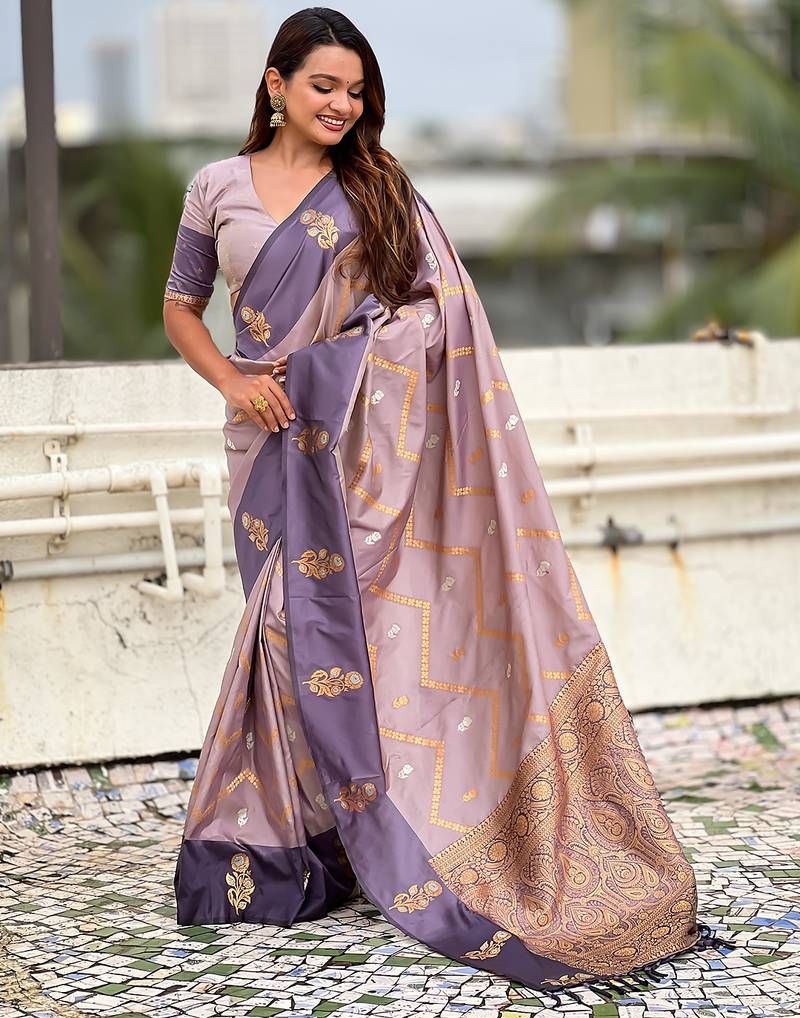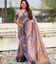 Lavender soft silk zari weaving saree with matching blouse piece