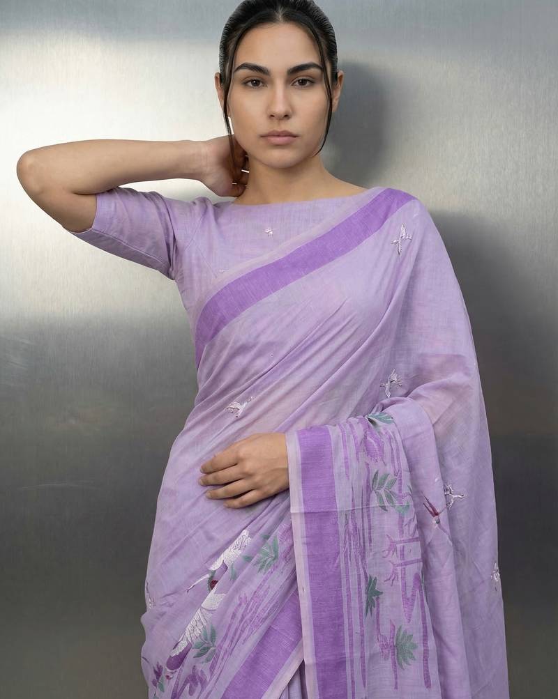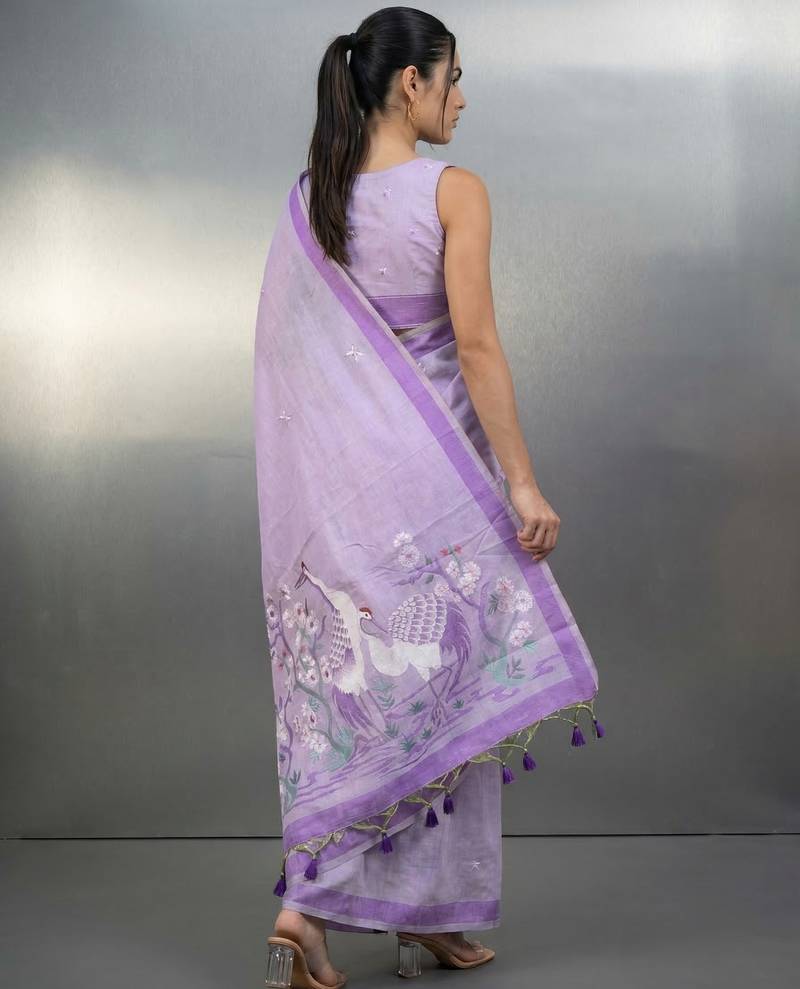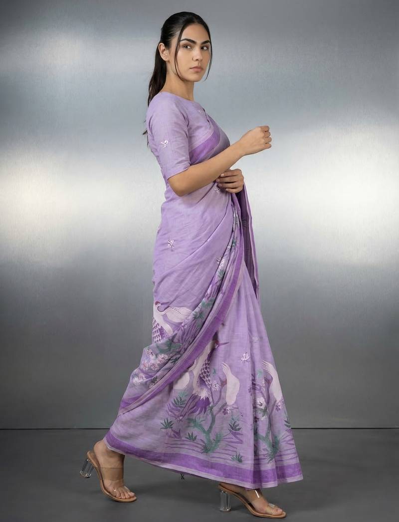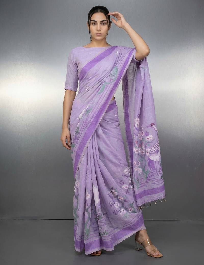 | • | Saree | : | Color- Lavender / Fabric- Linen |