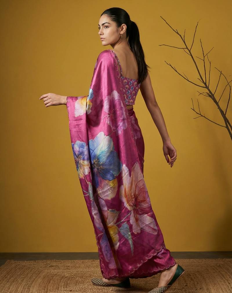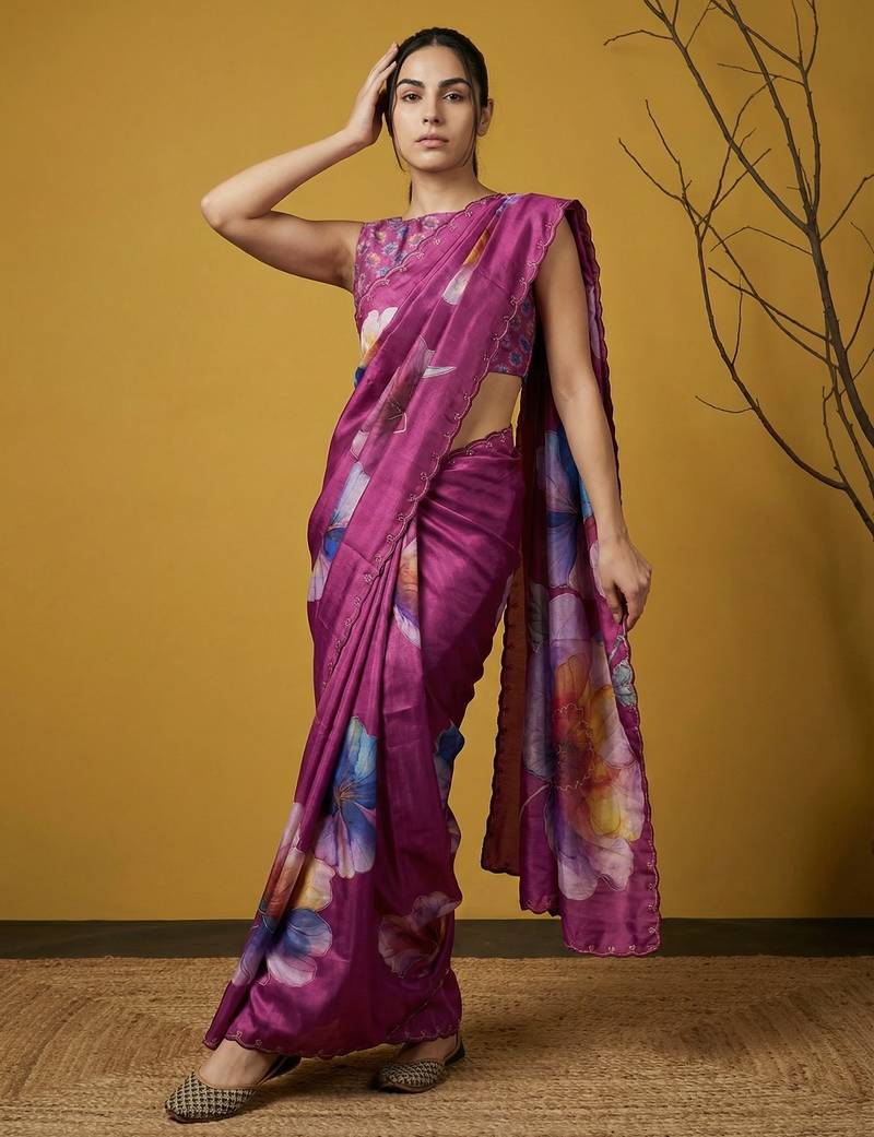 | Product Name | Magenta Multicolor Floral Print Digital Print Work Silk Blend | |