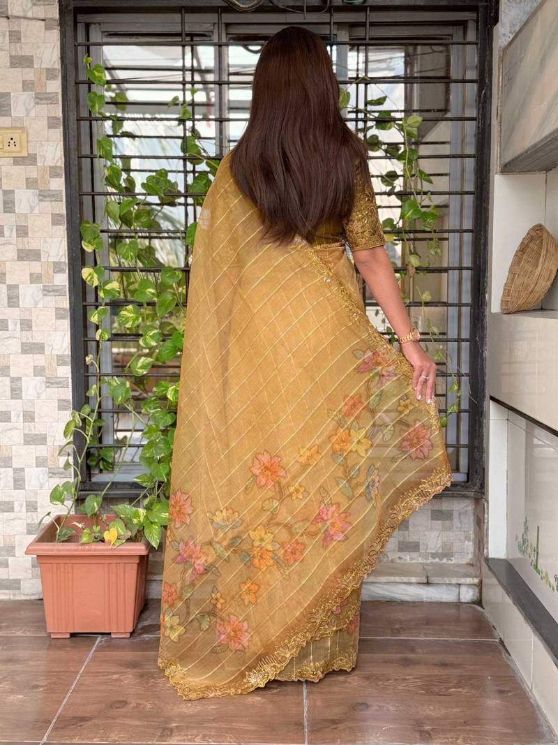 | • | Saree | : | Color- Olive / Fabric- Organza |