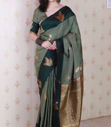 Olive soft silk zari weaving saree with matching blouse piece