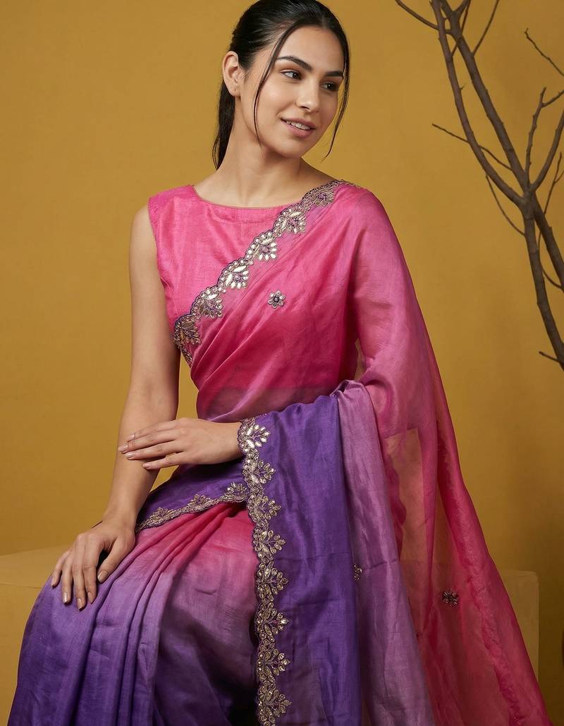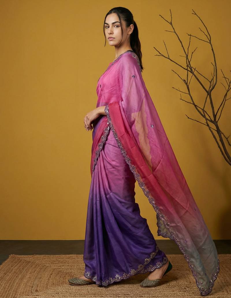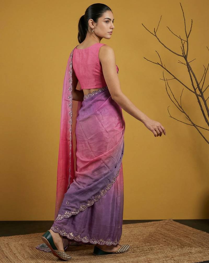 | Product Name | Peach Ombre Zari Embroidery Border Work Organza Silk Party | |