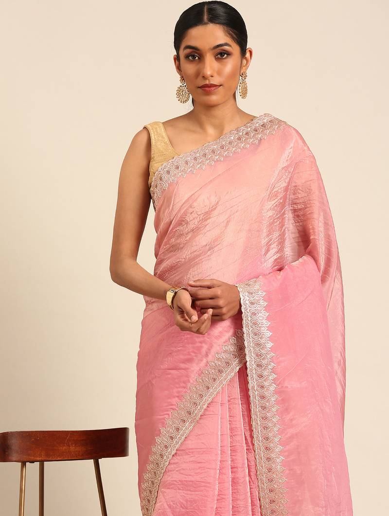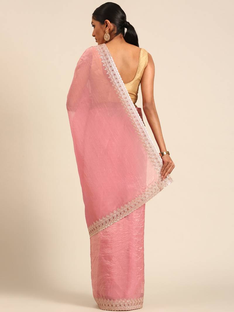 | Product Name | Pink Gold Crush Embroidery Work Border Saree | |