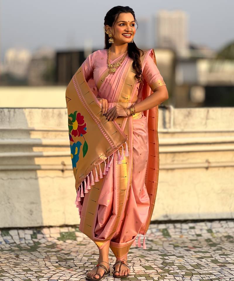 | Product Name | Pink Soft Silk Paithani Nauvari Zari Weaving Saree With Matching Blouse Piece | |