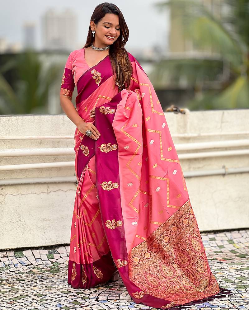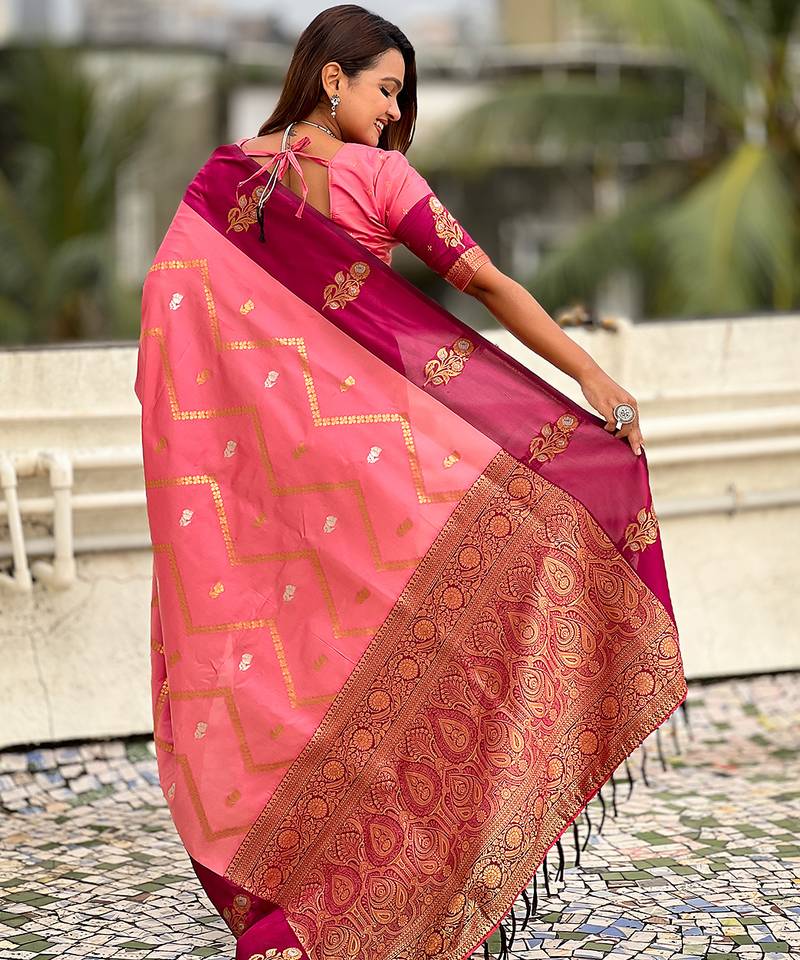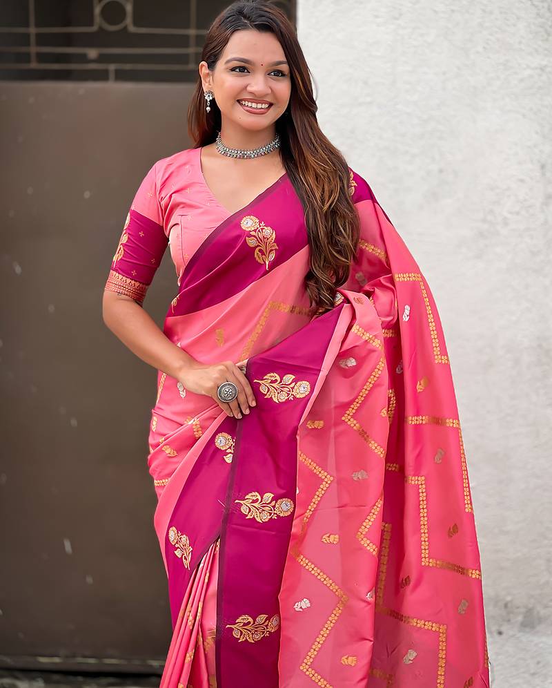 | Product Name | Pink Soft Silk Zari Weaving Saree With Matching Blouse Piece | |