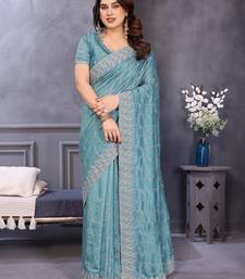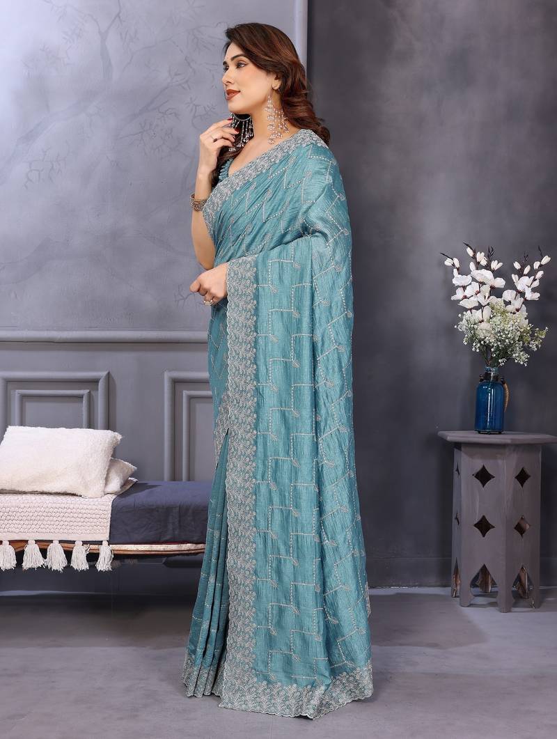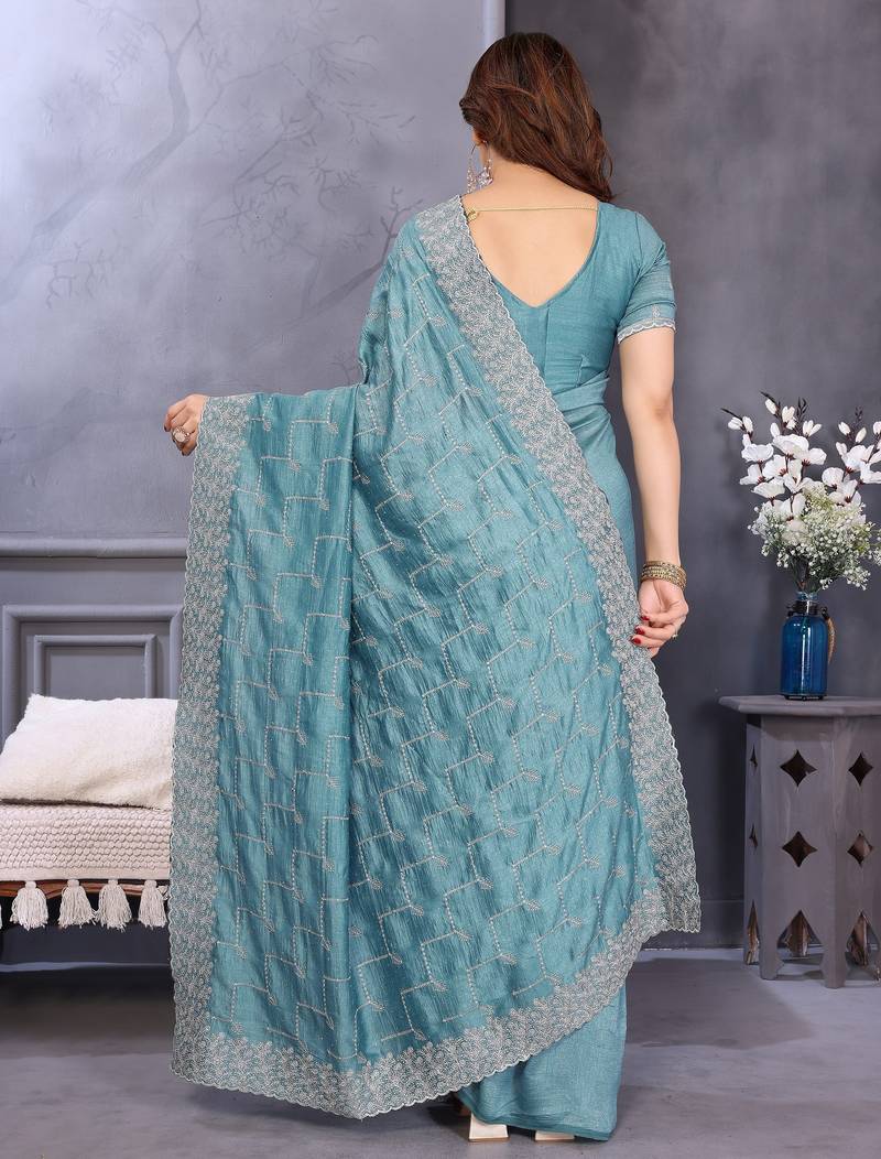 Sky blue vichitra silk saree with sequence embroidery work and matching blouse piece