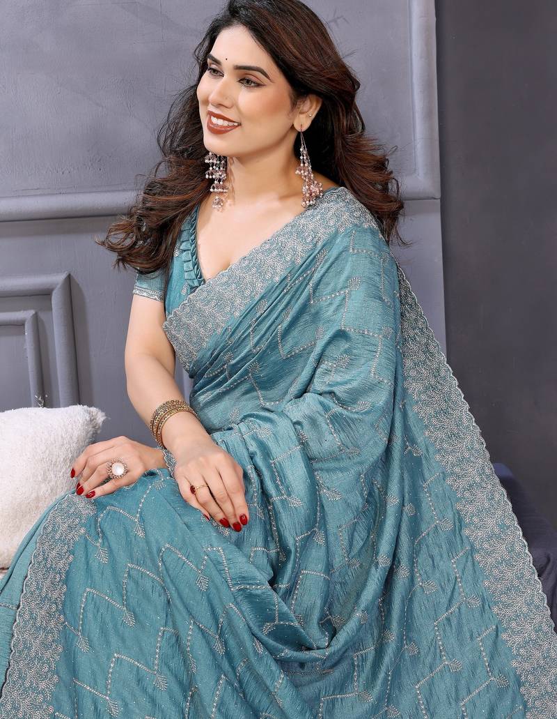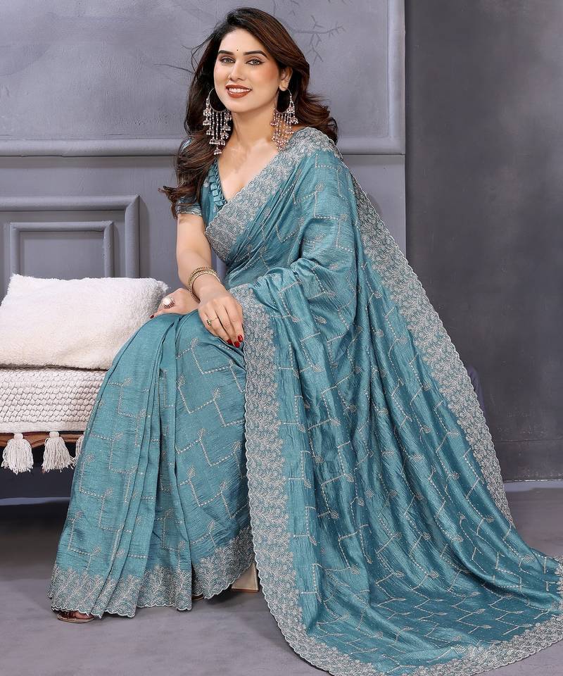 Vichitra Silk Saree With Sequence Embroidery Work And Matching Blouse Piece
