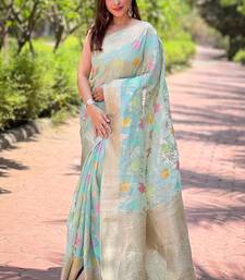 Sky blue zari woven organza women's saree with blouse piece