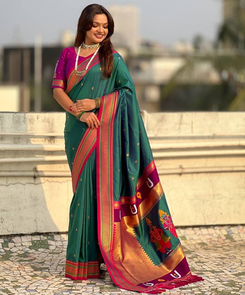 | Product Name | Teal Organza Zari Weaving Saree With Matching Blouse Piece | |