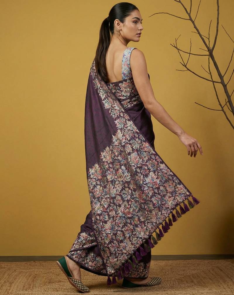 | Product Name | Wine Digital Print Floral Work Silk Blend Traditional Elegant Style Printed Saree With Blouse Piece | |