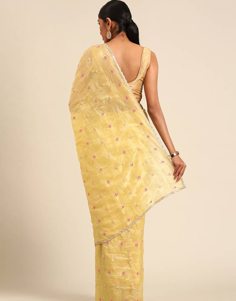 | Product Name | Yellow Gold Crush Embroidery Work With Lace Border Saree | |