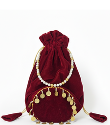 | Product Name | Maroon Plain With Sikka Zumkha Lace On Bottom Round Potli | |