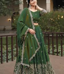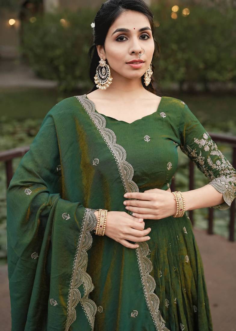 Olive color embroidery thread work and butti all over nc vichitraa lehenga with fully stitched blouse