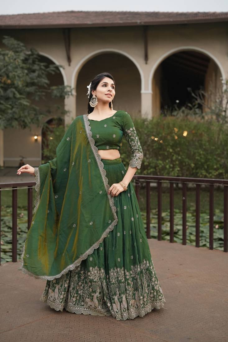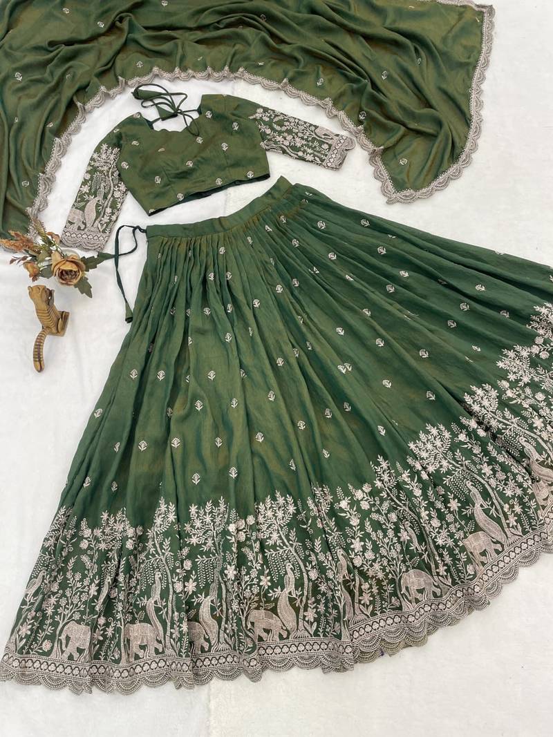 | Product Name | Olive Color Embroidery Thread Work And Butti All Over Nc Vichitraa Lehenga With Fully Stitched Blouse | |