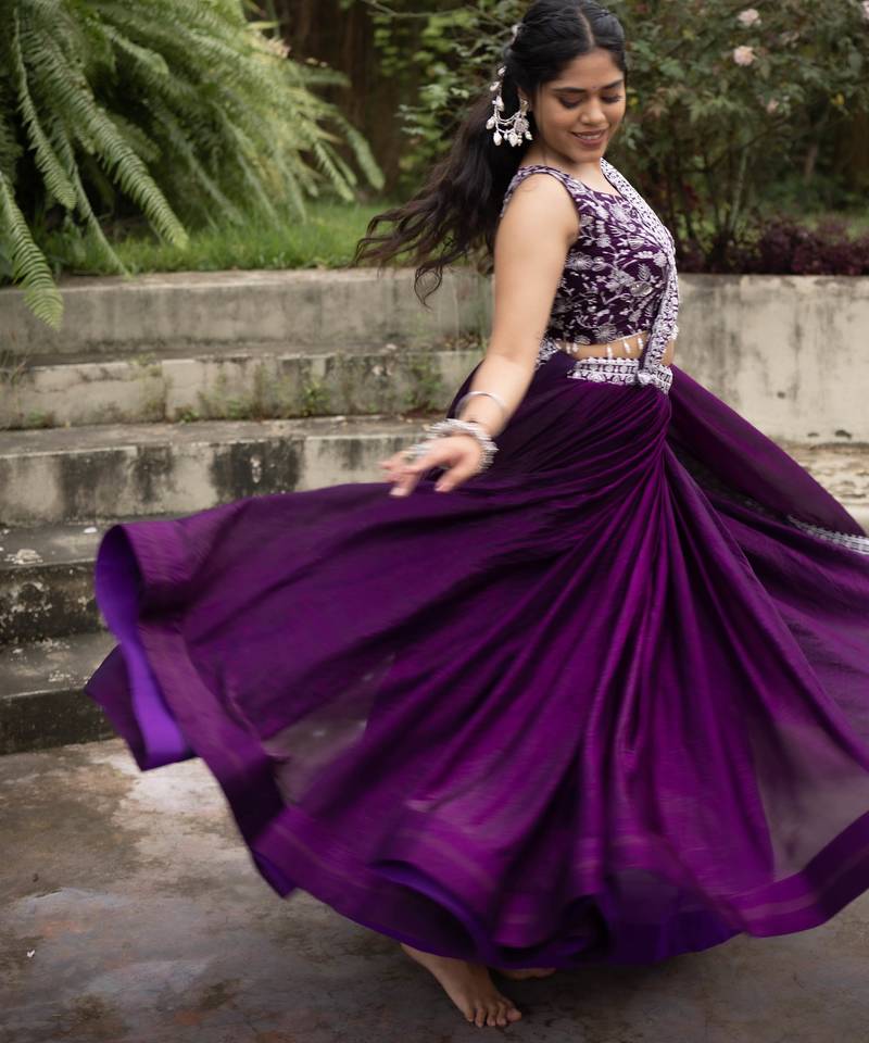 Product Description | Traditional Indian Lehenga Set In A Rich, Deep Purple Shade Fendy Satin Silk Fabric. This Attire Is Ideal For Weddings, Receptions, Or Festive Making It A Standout Choice For Special Occasions. |