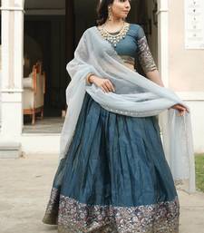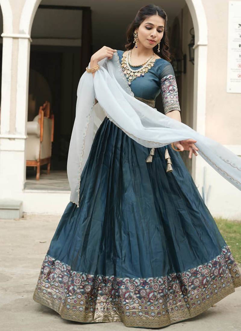 Rama color silver-golden zari weaving work silk lehenga choli with unstitched blouse