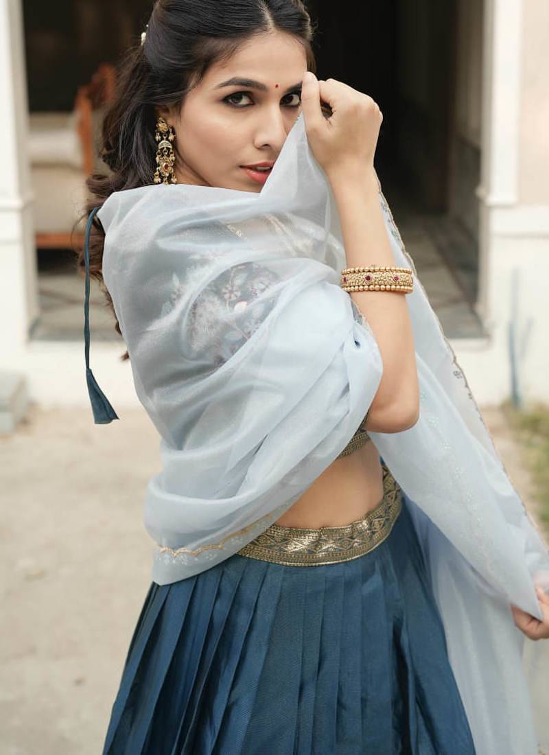 | Product Name | Rama Color Silver Golden Zari Weaving Work Silk Lehenga Choli With Unstitched Blouse | |