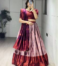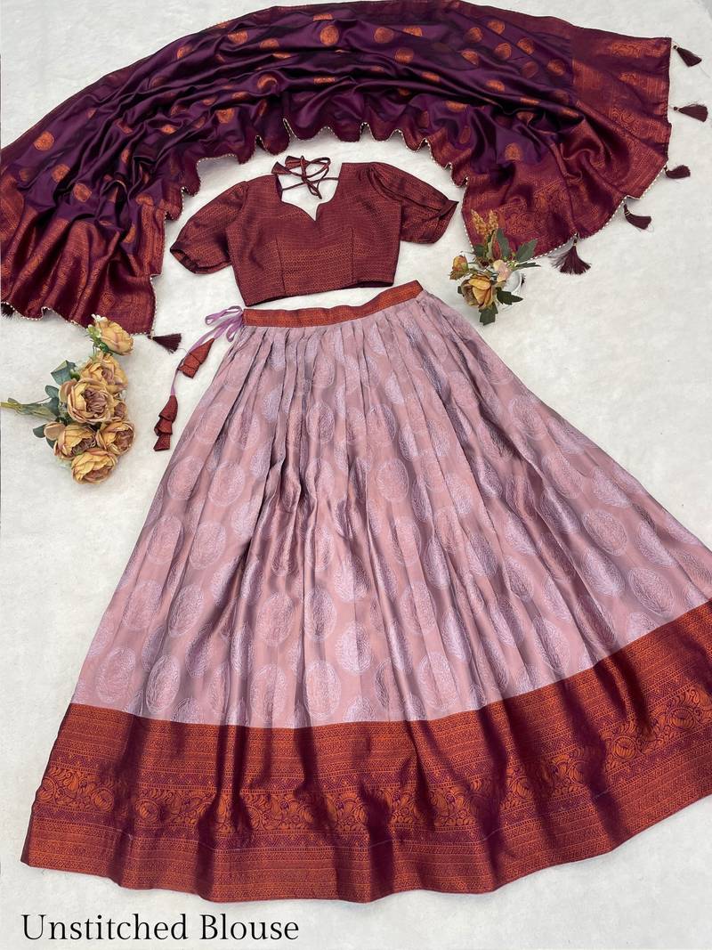 Wine color zari weaving work silk lehenga choli with unstitched blouse