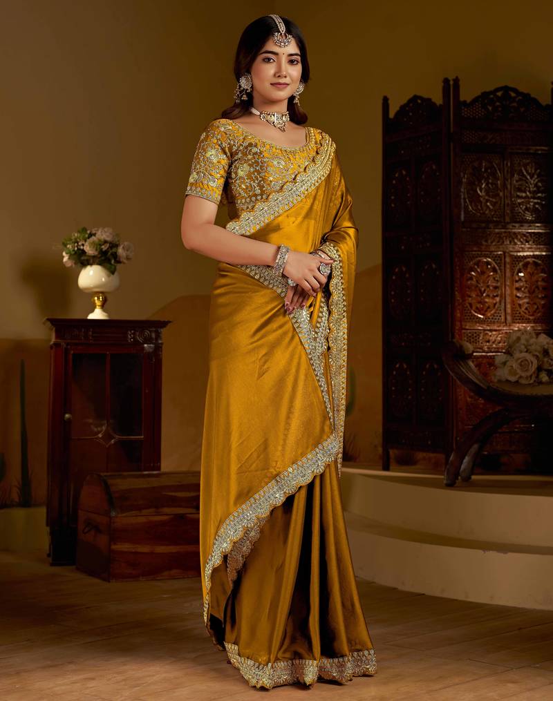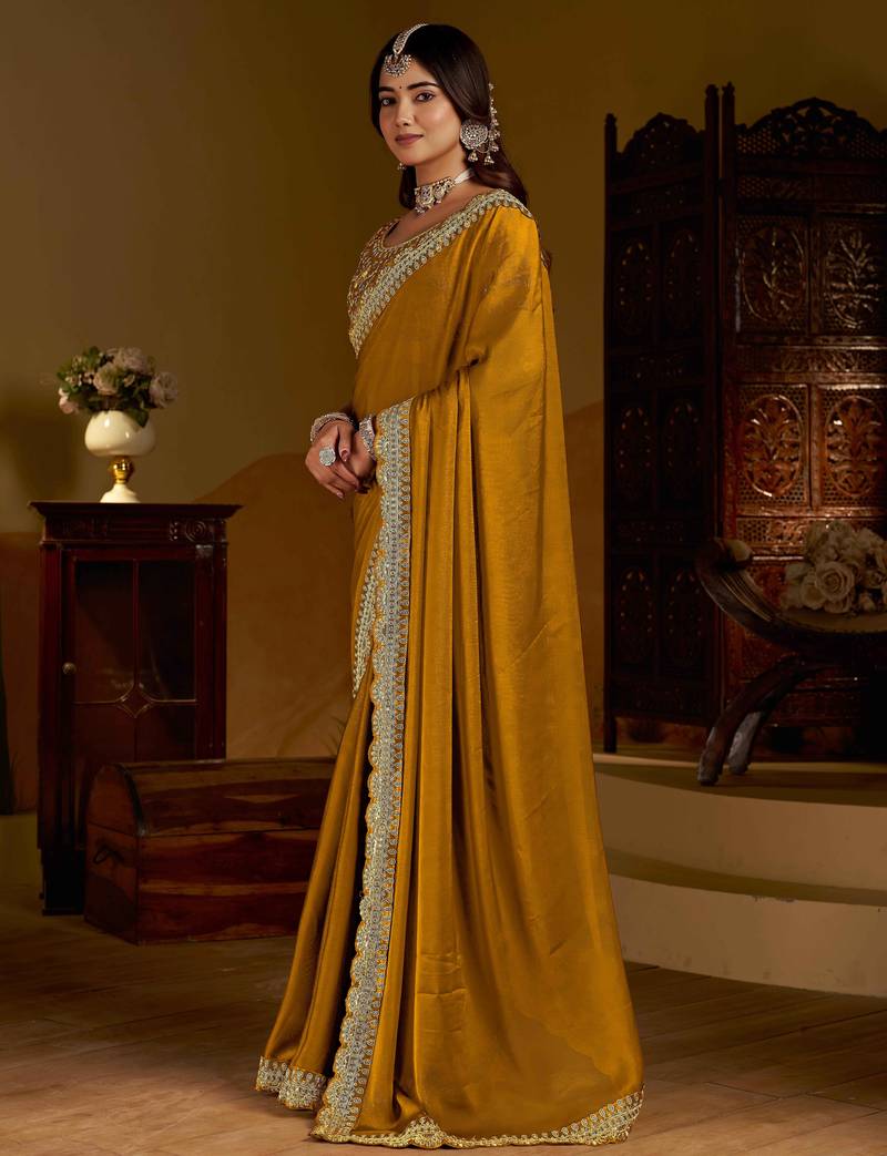 | Product Description | Elevate Your Ethnic Wardrobe With This Stunning Gold Rangoli Silk Saree Designed For Elegance And Grace. Crafted From Premium Quality Rangoli Silk Fabric, This Saree Features Intricate Embroidery Work With A Beautifully Detailed Border That Adds A Rich And Luxurious Touch. The Heavy Embroidered Blouse Enhances The Overall Royal Look, Making It Perfect For Weddings, Receptions, Festive Celebrations, And Party Wear Occasions.