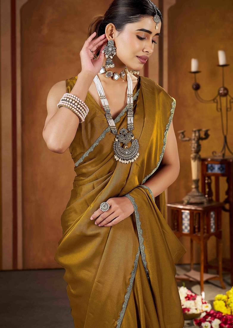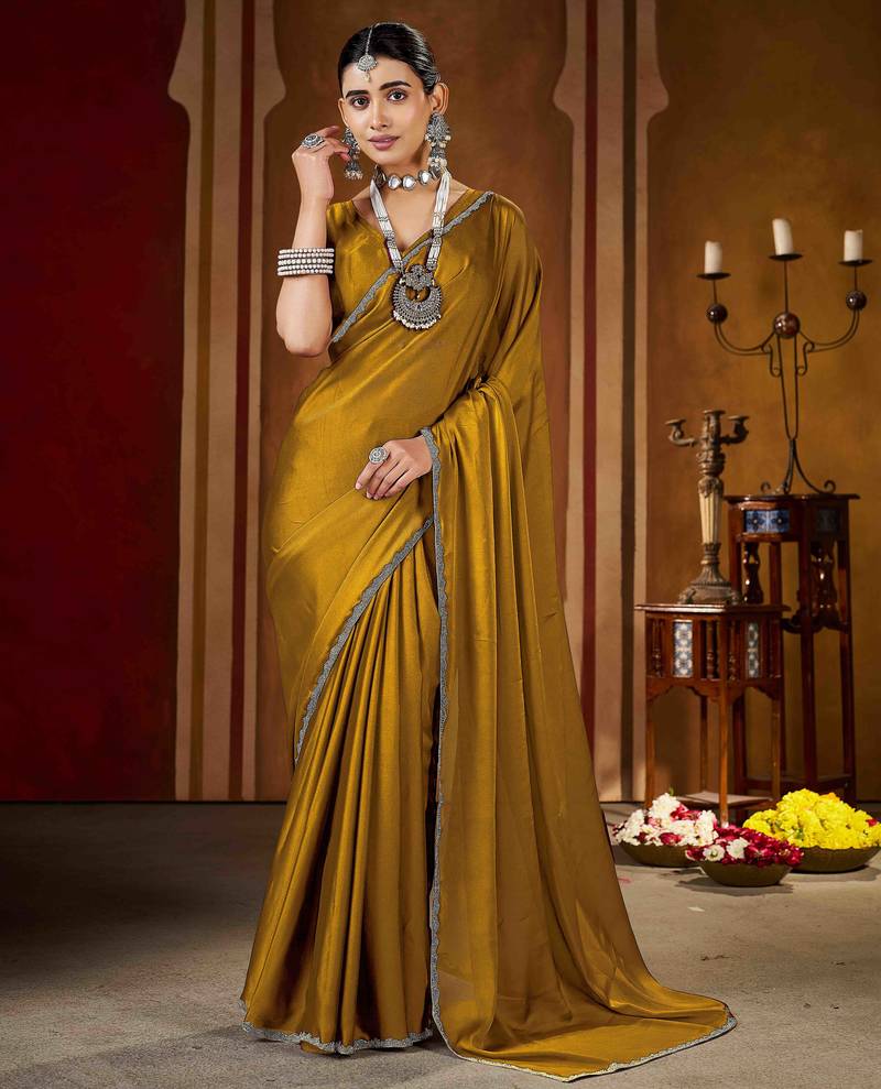| Product Description | Add Timeless Elegance To Your Ethnic Collection With This Gold Color Rangoli Silk Saree, Crafted For Women Who Love Classy And Graceful Fashion. Made From Premium Quality Rangoli Silk, This Saree Features A Smooth Texture, Lightweight Feel, And A Rich Glossy Finish That Drapes Beautifully. The Saree Is Enhanced With An Exquisite Gold Color Beads Lace Border, Adding A Luxurious And Festive Touch To Its Sophisticated Black Base.Perfect For Weddings, Festive Occasions, Parties, Receptions, And Evening Events, This Saree Blends Traditional Charm With Modern Elegance. Style It With A Contrast Or Matching Blouse, Statement Jewelry, And Heels To Create A Stunning And Confident Look. This Saree Is An Ideal Choice For Both Special Occasions And Elegant Celebrations. |