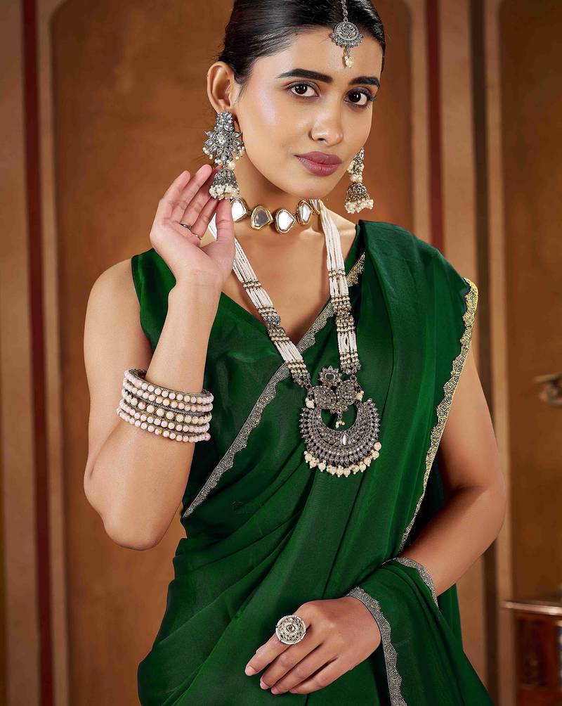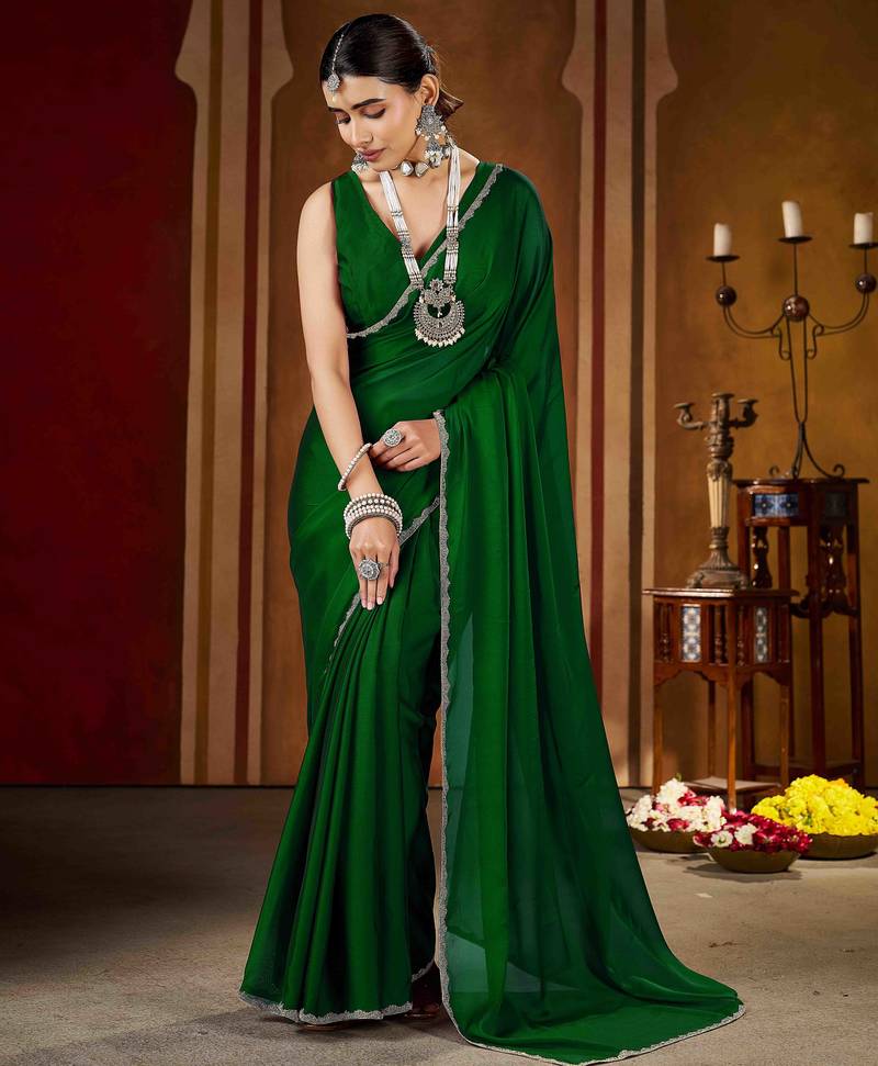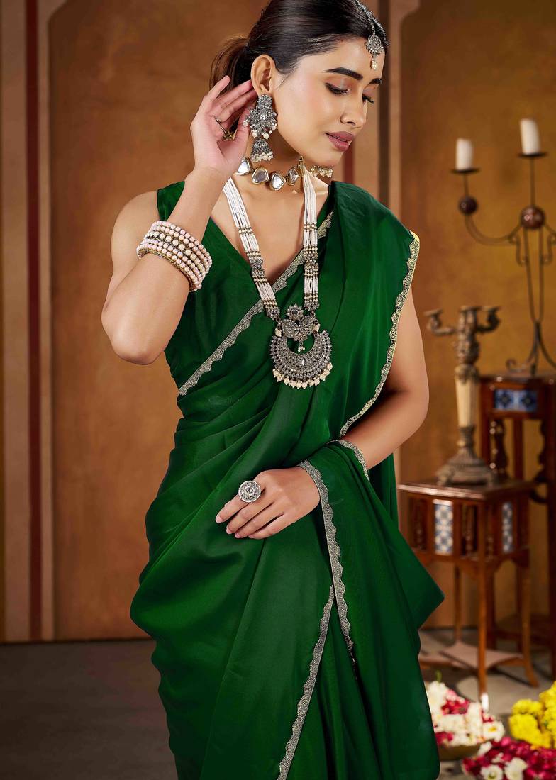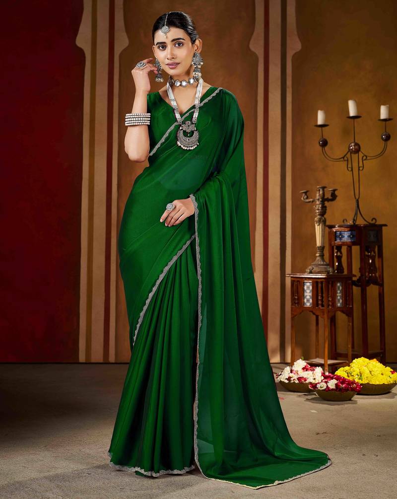 | Product Description | Add Timeless Elegance To Your Ethnic Collection With This Green Color Rangoli Silk Saree, Crafted For Women Who Love Classy And Graceful Fashion. Made From Premium Quality Rangoli Silk, This Saree Features A Smooth Texture, Lightweight Feel, And A Rich Glossy Finish That Drapes Beautifully. The Saree Is Enhanced With An Exquisite Gold Color Beads Lace Border, Adding A Luxurious And Festive Touch To Its Sophisticated Black Base.Perfect For Weddings, Festive Occasions, Parties, Receptions, And Evening Events, This Saree Blends Traditional Charm With Modern Elegance. Style It With A Contrast Or Matching Blouse, Statement Jewelry, And Heels To Create A Stunning And Confident Look. This Saree Is An Ideal Choice For Both Special Occasions And Elegant Celebrations. |