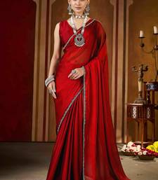 Party wear new rangoli silk red color saree with blouse and stone lace border