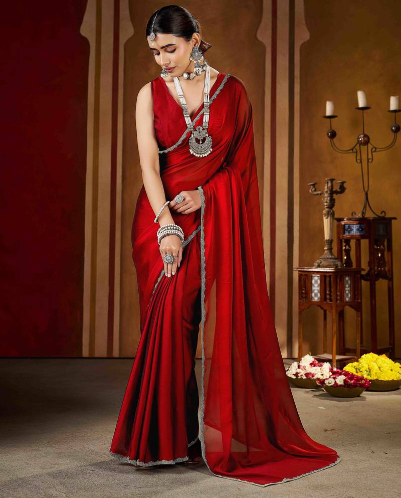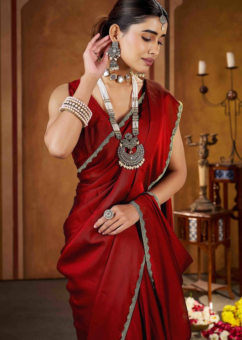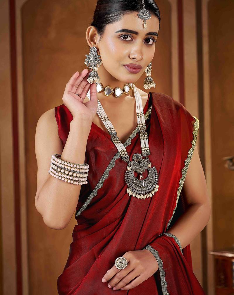| Product Description | Add Timeless Elegance To Your Ethnic Collection With This Maroon Red Color Rangoli Silk Saree, Crafted For Women Who Love Classy And Graceful Fashion. Made From Premium Quality Rangoli Silk, This Saree Features A Smooth Texture, Lightweight Feel, And A Rich Glossy Finish That Drapes Beautifully. The Saree Is Enhanced With An Exquisite Gold Color Beads Lace Border, Adding A Luxurious And Festive Touch To Its Sophisticated Black Base.Perfect For Weddings, Festive Occasions, Parties, Receptions, And Evening Events, This Saree Blends Traditional Charm With Modern Elegance. Style It With A Contrast Or Matching Blouse, Statement Jewelry, And Heels To Create A Stunning And Confident Look. This Saree Is An Ideal Choice For Both Special Occasions And Elegant Celebrations. |