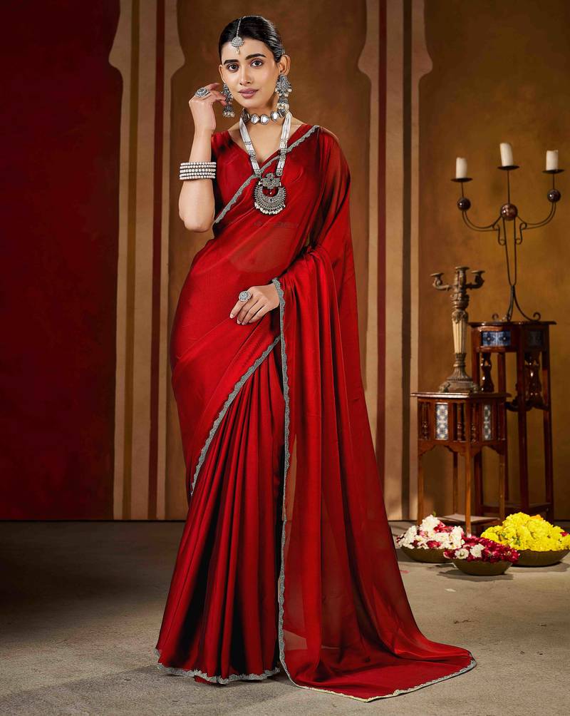 | Product Name | Party Wear New Rangoli Silk Red Color Saree With Blouse And Stone Lace Border | |