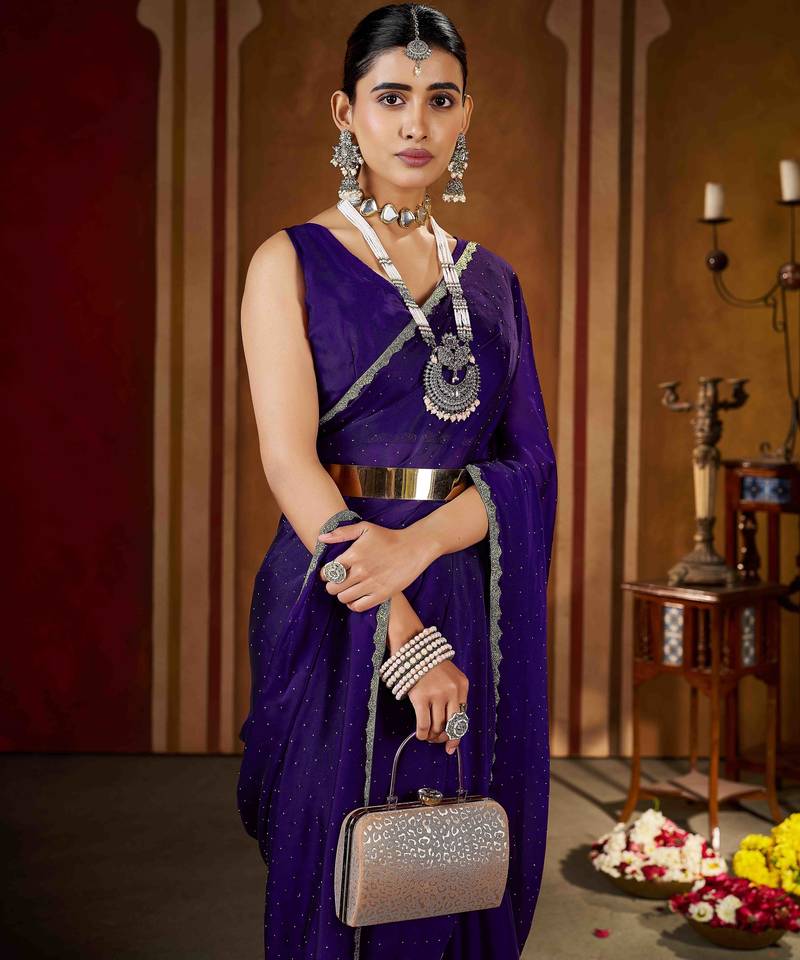 | • | Saree | : | Color- Violet / Fabric- Art Silk |