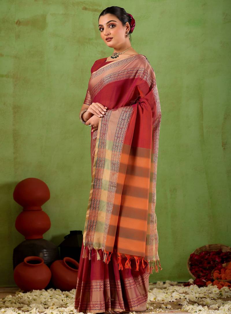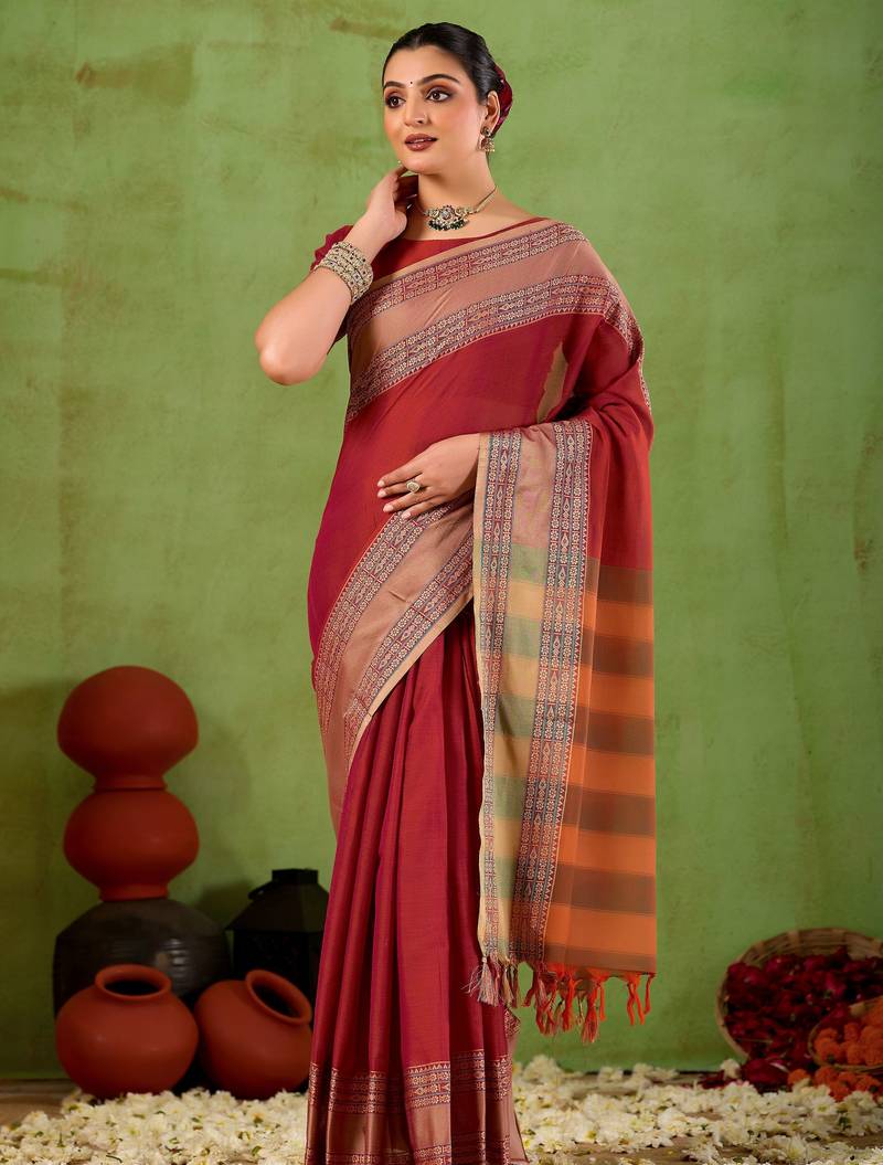 Raag varnam maroon narayanpet mercerized cotton saree