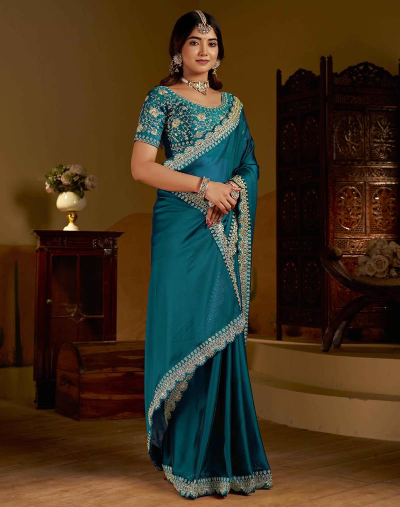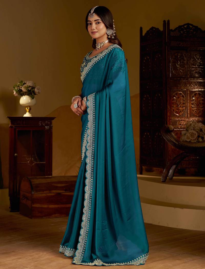 | Product Description | Elevate Your Ethnic Wardrobe With This Stunning Rama Green Rangoli Silk Saree Designed For Elegance And Grace. Crafted From Premium Quality Rangoli Silk Fabric, This Saree Features Intricate Embroidery Work With A Beautifully Detailed Border That Adds A Rich And Luxurious Touch. The Heavy Embroidered Blouse Enhances The Overall Royal Look, Making It Perfect For Weddings, Receptions, Festive Celebrations, And Party Wear Occasions.
