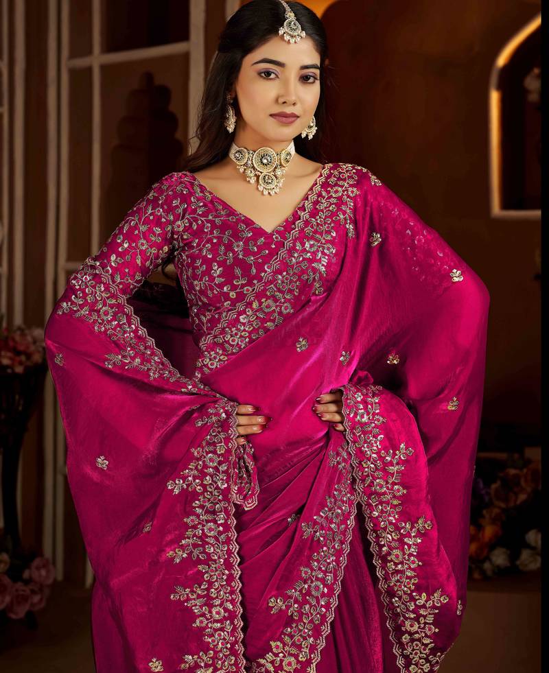 | Product Name | Rani Color Satin Silk Saree With Heavy Jari Embroidery Work & Designer Blouse | |