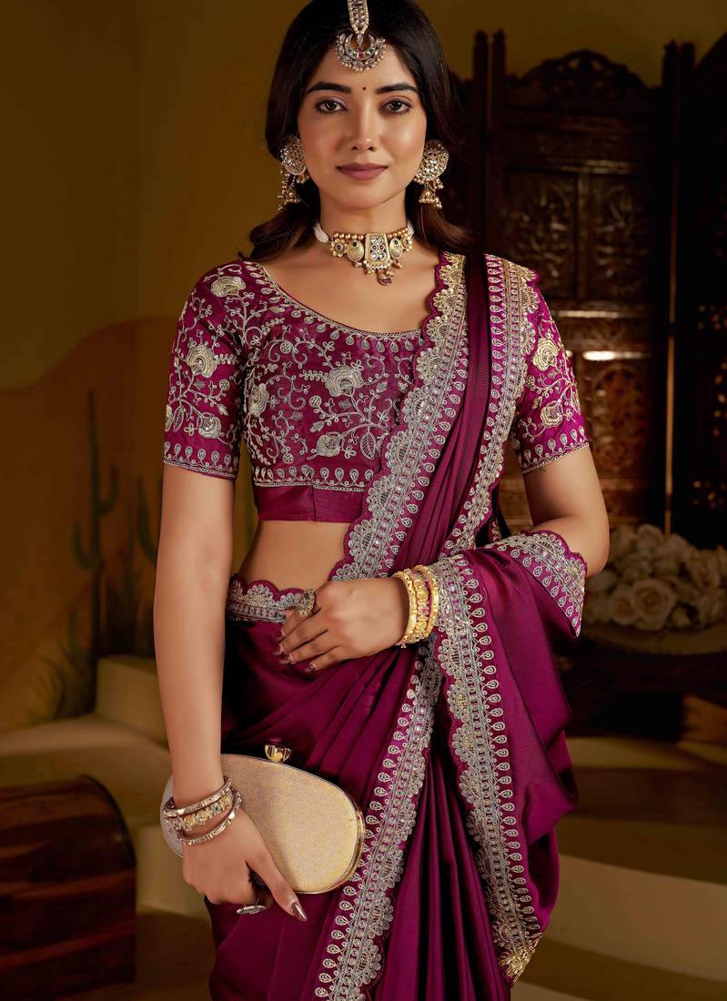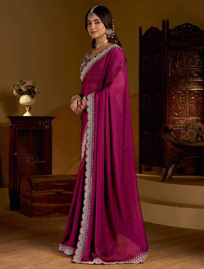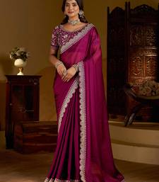 Rani pink rangoli silk saree with heavy embroidery work and heavy work